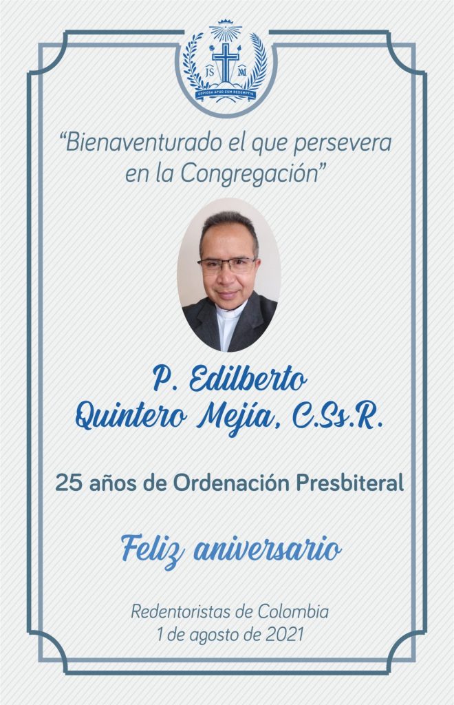 Es tradición en los Redentoristas de Colombia celebrar los aniversarios jubilares de profesión religiosa y ordenación sacerdotal en el marco de la fiesta de San Alfonso María de Liguori. Inicialmente, se iba a celebrar en conjunto con la Profesión Perpetua y Ordenación Diaconal de tres seminaristas, que por razones de fuerza mayor han sidos postergadas en septiembre.